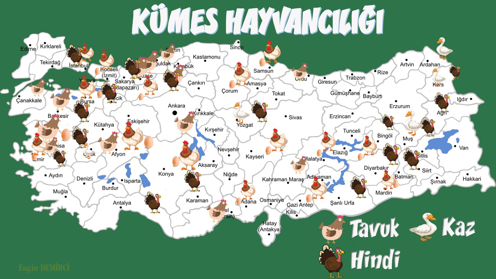 Türkiye balıkçılık, küçükbaş, büyükbaş, arıcılık ve kümes hayvancılığının dağılımı gösteren mükemmel bir çalışma.