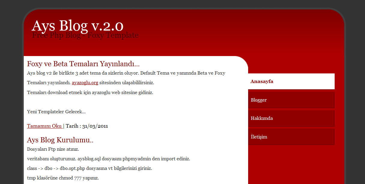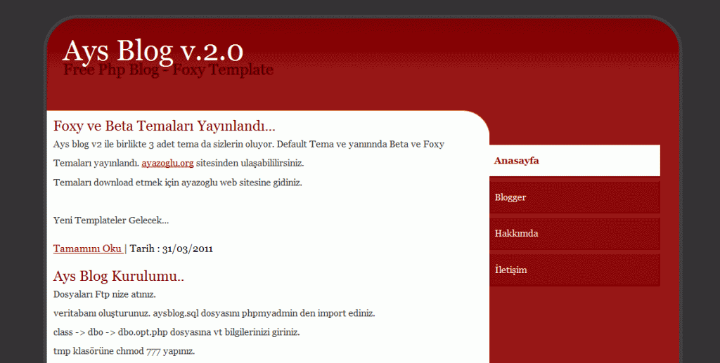 Tamemen yerli blog scripti.Geliştirilmeye açık ve teknik detestek yapımcısı tarafından salanacakmış